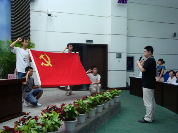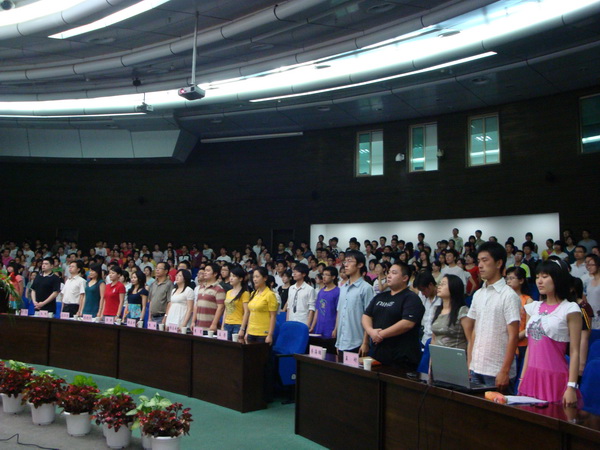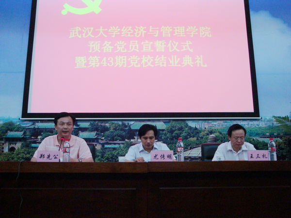 6月15日晚,伴随着庄严的国歌,英国正版365官网预备党员宣誓仪式暨第43期党校结业典礼在英国正版365官网报告厅拉开帷幕。校党委组织部党建与党校办公室主任王三礼,英国正版365官网党委书记、分党校校长尤传明,院党委副书记郑先公,以及院党政办公室和学生办公室的老师出席了本次典礼。此外,2009年上半年发展的预备党员和第43期入党积极分子也参加了典礼。典礼由郑书记主持。
