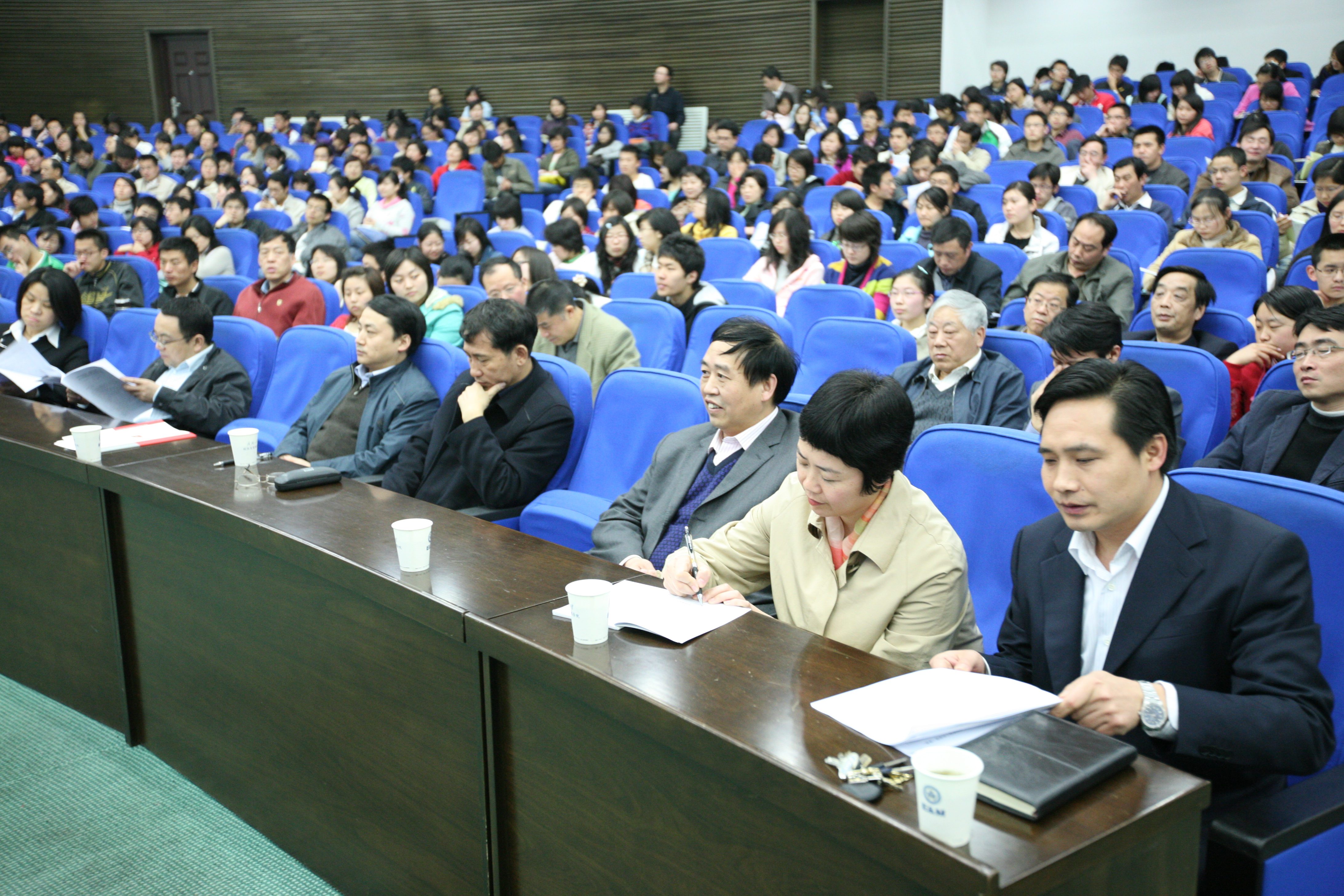院党委书记尤传明首先做了题为《以科学发展观为指导,积极探索大规模、多学科英国正版365官网又好又快发展的新模式与新途径》的动员报告。他指出本次动员大会将按照中央、教育部党组、湖北省委和英国正版365官网党委的要求,对英国正版365官网开展深入学习实践科学发展观活动进行动员和部署,统一思想认识,明确目标任务,为实现英国正版365官网又好又快发展提供坚实的保证。尤书记就英国正版365官网开展深入学习实践活动讲了四个方面的问题。一、深刻认识学习实践活动的重大意义,切实增强推动学院又好又快发展的责任感、使命感和紧迫感。二、准确把握学习实践活动的指导思想和“4456”的总体方案,扎实推进学习实践活动深入开展。三、在学习实践过程中力求达到“四新”的活动目标,解决制约学院科学发展的瓶颈问题。四、切实加强对学习实践活动的组织和领导,确保学习实践活动取得实效。谈到活动的具体开展,尤书记提了几点要求:一、加强领导,落实责任。二、严格程序,注重质量。三、联系实际,分类指导。四、求真务实,探索创新。五、发扬民主,接受监督。六、宣传造势,营造氛围。七、统筹兼顾,搞好结合。最后尤书记指出,这次开展深入学习实践科学发展观活动,意义重大,影响深远,我们一定要扎实工作,努力把学习实践活动开展成为“师生满意”的工程,加快推动学院各项事业又好又快的科学发展!